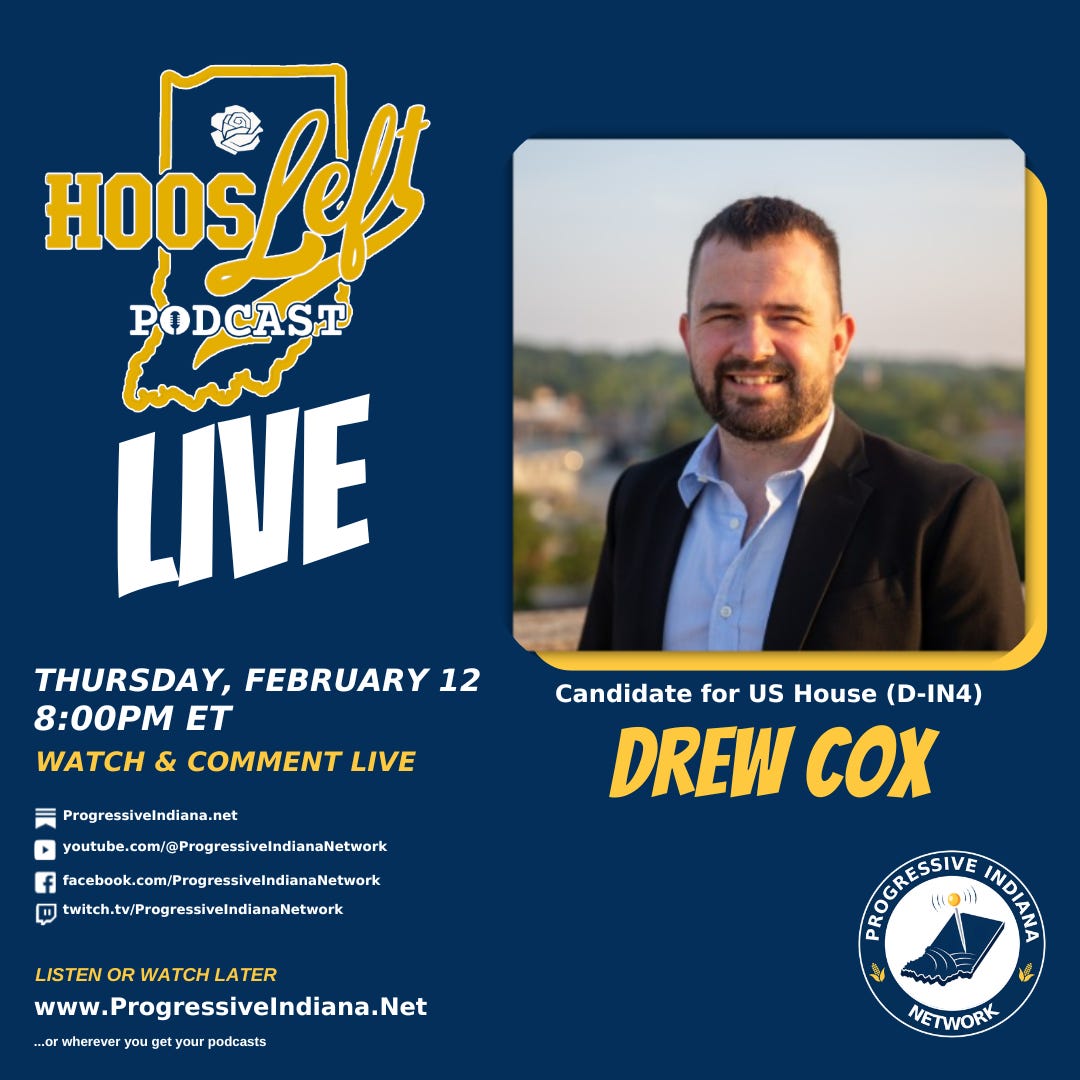 Scott Aaron Rogers interviews Drew Cox, one of nine Democratic candidates for Indiana’s 4th Congressional District. Cox, a Purdue music instructor, Marine Corps veteran, fourth-generation farmer, and son of an elementary school teacher, discusses his campaign platform focused on abolishing ICE, Medicare for All, cannabis legalization, tackling corporate power, and energizing young voters. He argues that ICE should be replaced with pre-9/11 immigration services, that healthcare costs are spiraling out of control as ACA subsidies expired (leaving his nephew who had a heart transplant without Medicaid), and that Congress must reassert authority over tariffs instead of letting Trump act unilaterally. Cox advocates raising corporate tax rates to incentivize wage investment over profit extraction, supporting grassroots candidates across every local race to spread GOP money thin, and making election day a national holiday while expanding early voting access. He emphasizes the need to regulate data centers requiring closed-loop systems and community benefits rather than tax abatements, criticizes Democrats for chasing corporate cash since the Clinton era, and stresses that building political power with young people (not just around them) is essential to counter Citizens United and achieve progressive goals in this sprawling 16-county district.